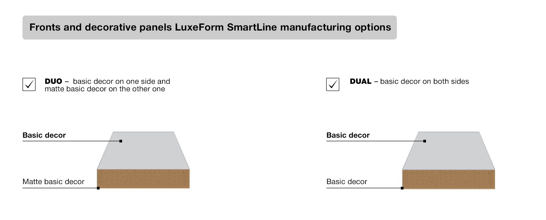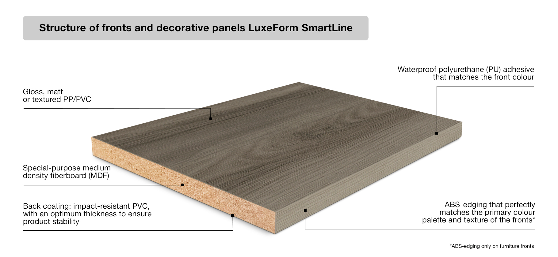 The reliability of LuxeForm SmartLine panels and fronts will create an ideal, long-lasting living space for you.